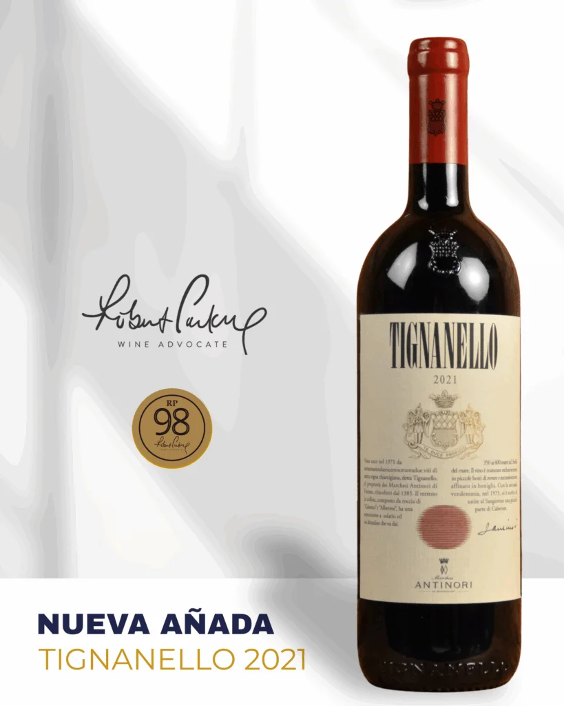 Con una valoración de 98 puntos Robert Parker, Tignanello 2021 deslumbra por sus aromas a frutos rojos maduros, matices especiados, cacao y sutiles notas balsámicas. En boca se muestra sedoso, con taninos finos y pulidos, y un final prolongado que deja una huella memorable en quienes disfrutan de los grandes vinos del mundo.